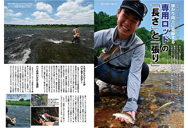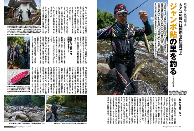 今月の特集は初秋に楽しいハゼとアユ。ハゼ釣りは子どもからベテランまで誰でも手軽に楽しめるのが魅力の釣りです。シンプルな仕掛けながら随所に個性が光る仕掛け紹介は参考になること間違いなし。アユの友釣りではオモリを使ったオトリ拘束やオトリの顔向きでコントロールする術を取り上げています。