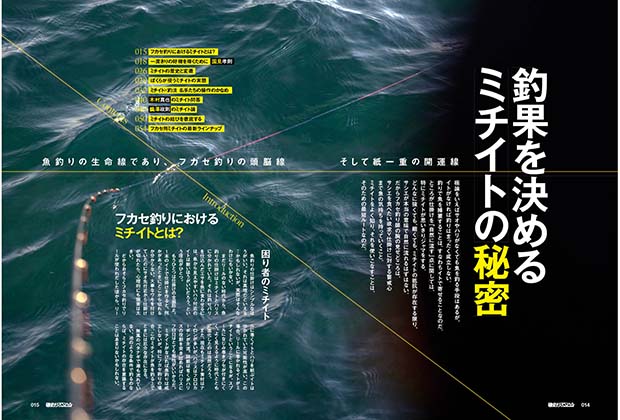 仕掛けを自然に流し込むグレフカセにおいて、釣りを難しくするのがミチイトです。どんなに強くて細くてもミチイトがある限りサシエがマキエのように流れることがないからです。今号の特集はミチイトの理解を深めて使いこなすための「釣果を決めるミチイトの秘密」です。ミチイトの役割、問題点、歴史と変遷、強い結びといった基本から、木村真也さんのミチイト問答、鵜澤政則さんのミチイト論、実釣取材で49cmの口太グレを引き出した国見孝則さんをはじめ名手が明かす使いこなしのかなめ、最新ミチイトカタログなどレベルアップにつながる情報を詰め込みました。また、山口美咲さんのチヌ釣り王座決定戦に密着、クエ釣り入門Q&A、イシダイ遠投釣りのそこが知りたいほか、盛りだくさんの内容でお届けします。