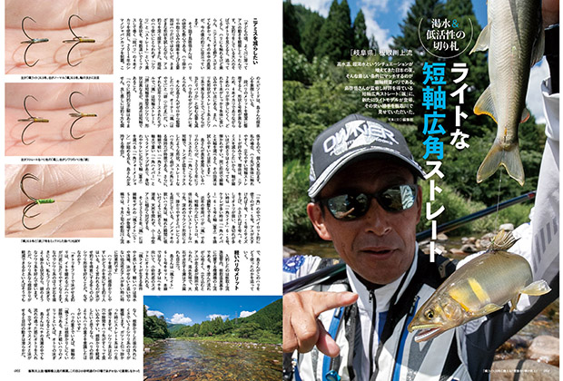 特集はオモリ。その拘束力に目覚めた名手の使い方や、オトリをよりスピーディーに動かせるメリットをまとめ、基本から異端まで古今東西のオモリ使いが学べます。また、全国的に天然アユの大量遡上に恵まれた昨夏の各地の河川の模様、研究者たちの未来のアユ河川に向けた多角的な考察も見どころです。テクニックから歴史物まで多彩なシーンを網羅した記事は、解禁前からシーズン中まで、繰り返し読み返したくなる完全保存版です。