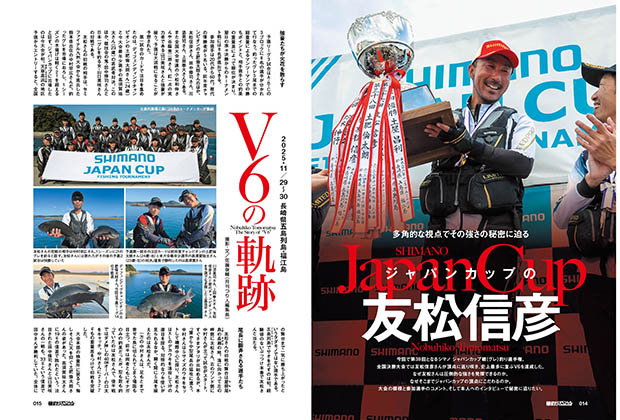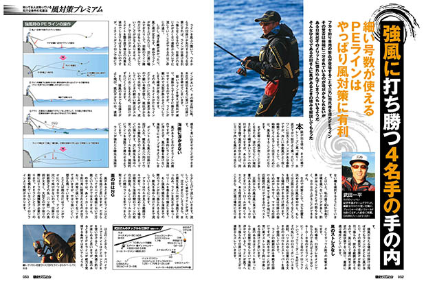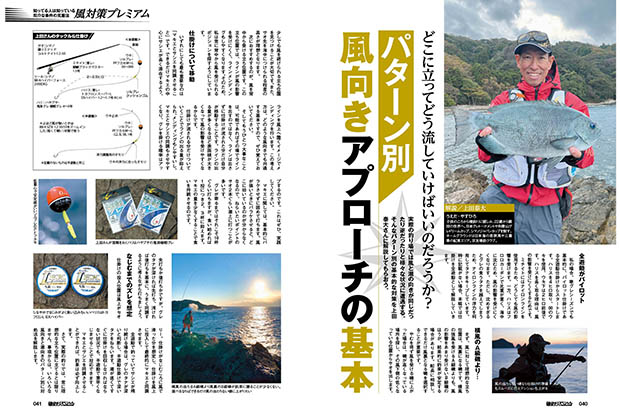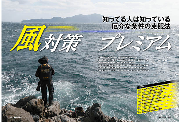 今号の特集は「風対策プレミアム」。シーズンまっただ中の寒グレ釣りにつきものの季節風は、ただ寒いだけでなくフカセ釣りを難しくし、場合によってはアタリの数が激減なんてことにもなりかねません。そんな風を克服する様々な方法を盛り込んだとても実践的な内容です。昨年11月末に開かれたシマノジャパンカップで6度目の栄冠に輝いた友松信彦さんのV6の軌跡、セミファイナルが導入されてさらにアツくなるG杯の新たな一歩と強者の意気込み、スレたデカ尾長を手玉に取る西森康博さんと北村憲一さんがこだわり続ける海中での仕掛けの状態、口太50cmにもっとも近い宇和海と三重のガイド、開発者に訊くハリの秘密など情報満載でお届けします。