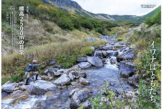黒部川源流、薬師沢など上流域を中心とした美しい景観を迫力のある大きな写真で紹介しています。また、釣り人の集まる平乃小屋で起こった不思議なエピソードや上ノ廊下・立石の淵を目指した珍道中など、くすりと笑える記事や黒部ダム流入河川案内もあり、読み応えのある特集となっています。