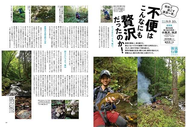 他にも渓流の看板でもある源流泊に、日帰り渓流釣行記なども充実。渓流ファンが川へ行きたくなる一冊です。