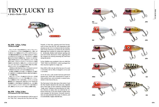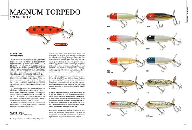 今回は、マグナム・トーピードを筆頭に「1」を大幅に上回る数の全24ルアーバリエーションと、過去のオリムピックカタログを収載。